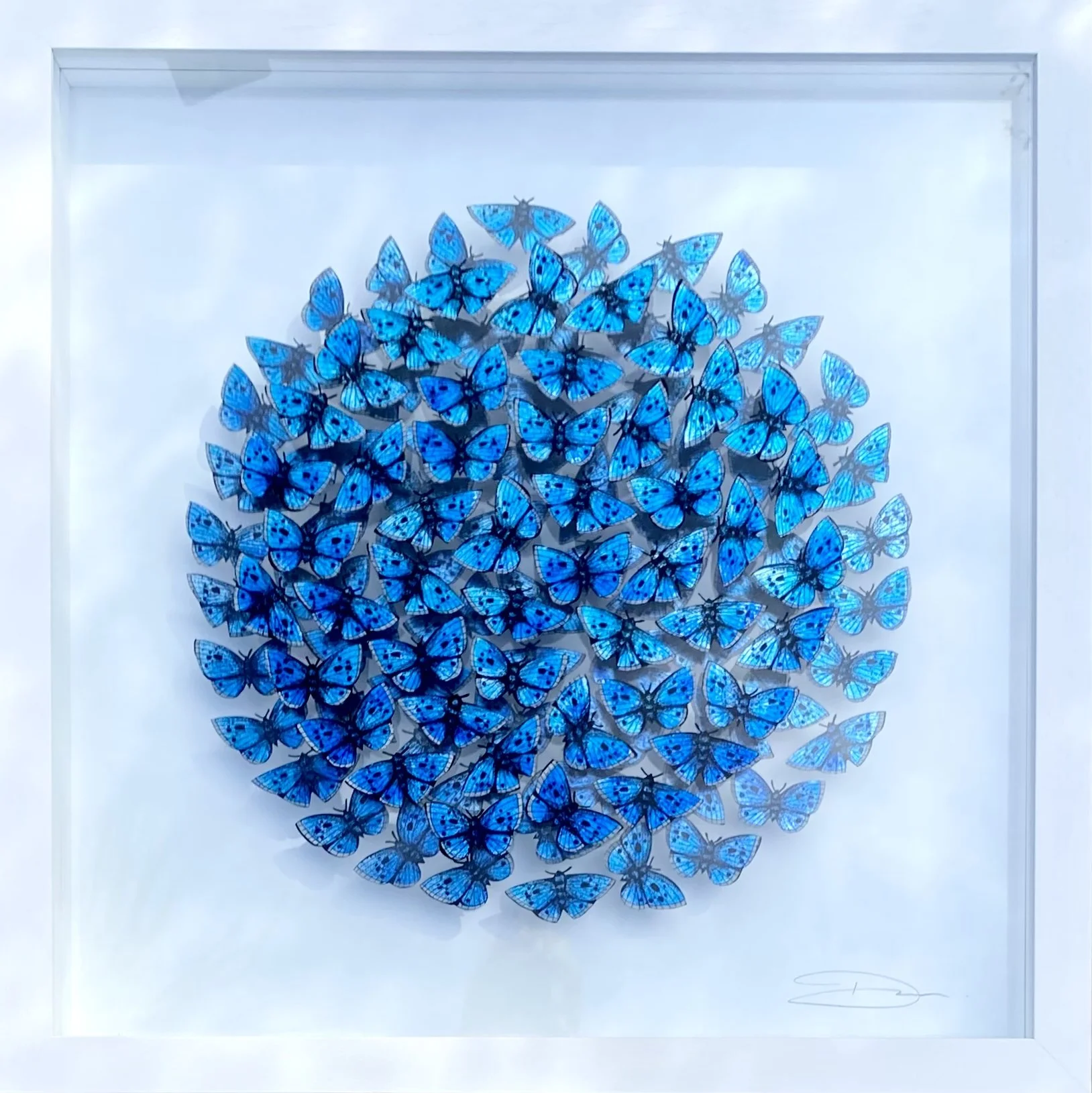 Hidden in plain sight and after several months of eating its ant siblings. it forms its chrysalis and several months later emerges from underground as a beautiful Large Blue Butterfly.